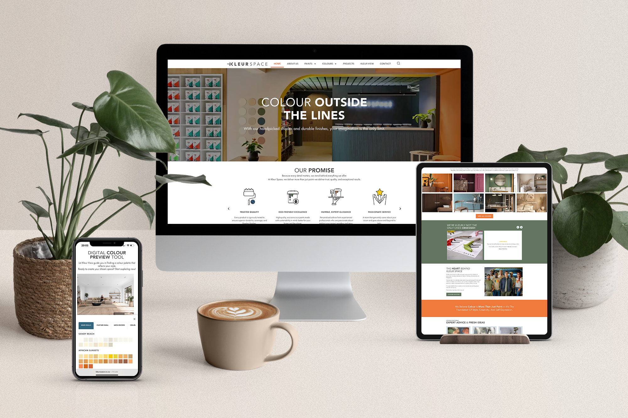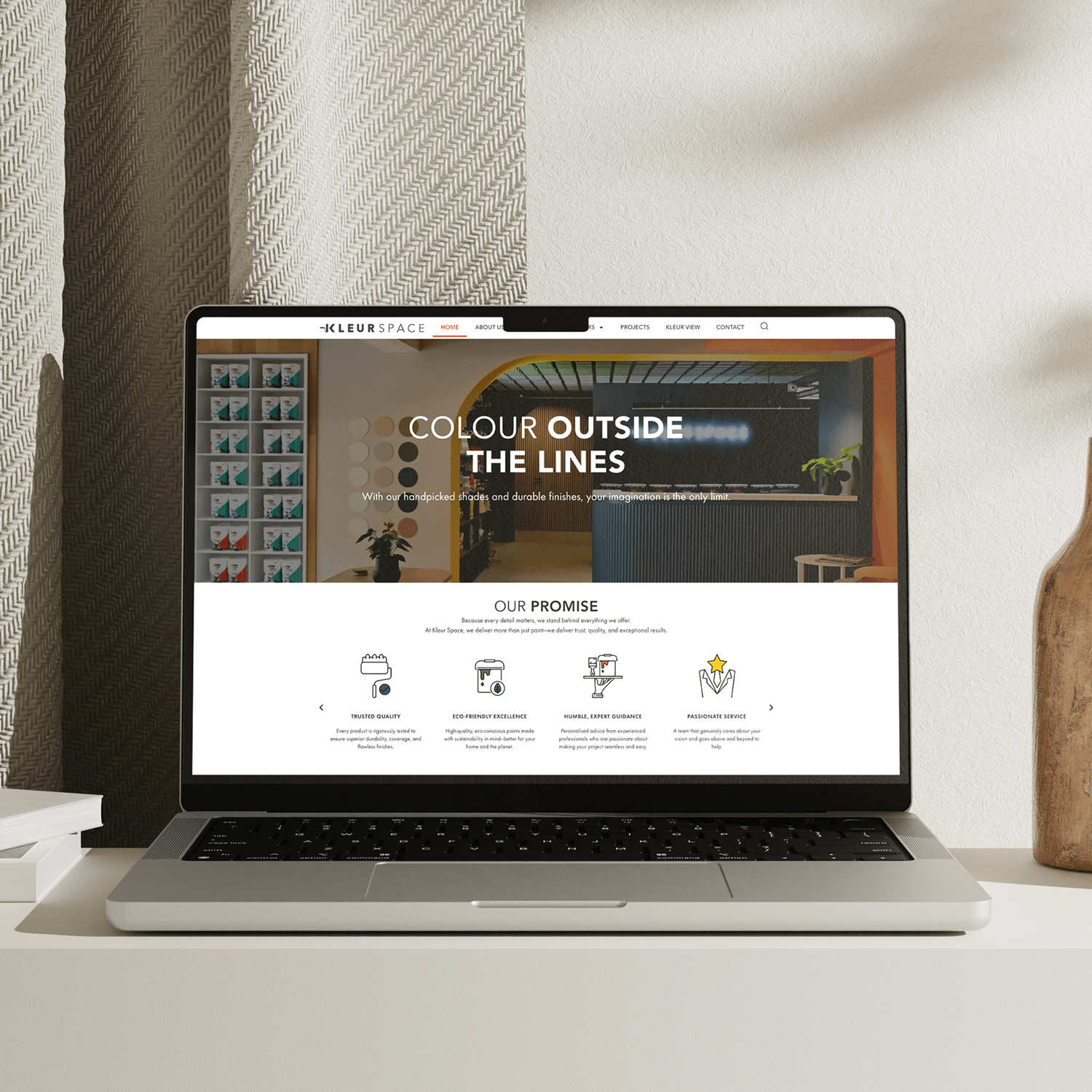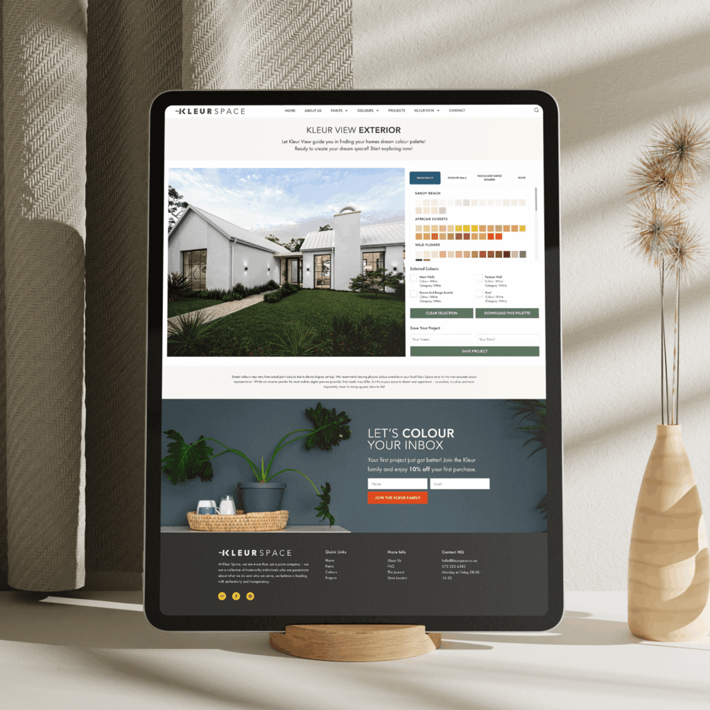 The goal for Kleur Space was to create a website that felt bold and modern while being simple to navigate. We restructured the site to improve user flow, making it easier for customers to browse colour palettes and move smoothly from inspiration to action. Clear menus and intuitive layouts now guide visitors through the site without overwhelm.